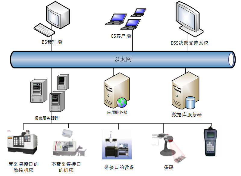 ● 采用B/S和混合架构,,,,B/S部分侧重管理和分析,,,,C/S部分侧重采集;